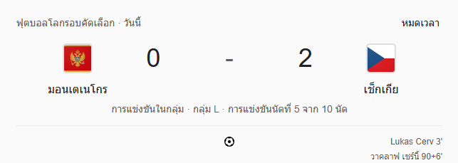 ผลบอลสด ฟุตบอลโลก 2026 รอบคัดเลือก โซนยุโรป กลุ่ม L ระหว่าง มอนเตเนโกร vs เช็ก วันนี้ 6/9/68 ดูบอลย้อนหลัง คลิปไฮไลท์ ดูบอล ฟุตบอลโลก 2026 รอบคัดเลือก โซนยุโรป กลุ่ม L