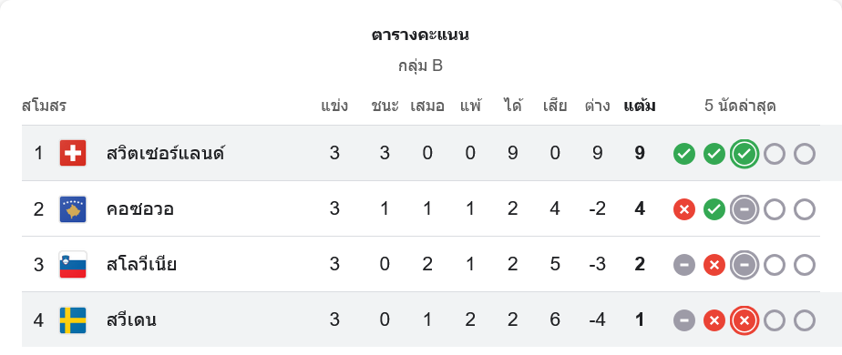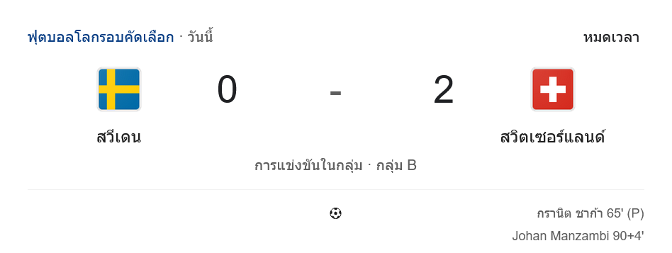 การแข่งขันฟุตบอลโลก รอบคัดเลือก โซนยุโรป กลุ่ม B ค่ำคืนสุดเข้มข้น สวิตเซอร์แลนด์ โชว์ฟอร์มโหดบุกถล่ม สวีเดน ถึงถิ่นด้วยสกอร์ 2-0 เกมนี้แม้เจ้าถิ่นจะพยายามตั้งรับแน่นแต่ก็ไม่อาจต้านทานความเฉียบคมของทีมเยือนที่เล่นได้อย่างมีระบบและมีวินัยตลอด 90 นาที ทำให้สถานการณ์ในกลุ่มเริ่มชัดเจนมากขึ้น โดยเฉพาะตำแหน่งจ่าฝูงที่ยังเป็นของสวิตฯ อย่างเหนียวแน่น สำหรับแฟนบอลที่ตาม ผลบอลสด กันแบบเรียลไทม์ เกมนี้ถือว่ามีจังหวะมันส์หลายช่วงโดยเฉพาะครึ่งหลังที่เป็นจุดเปลี่ยนสำคัญ