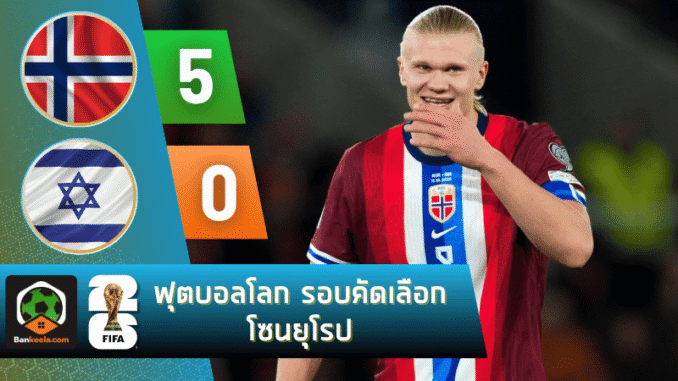 การแข่งขัน ฟุตบอลโลก รอบคัดเลือก โซนยุโรป นัดที่ 7 กลุ่ม I ค่ำคืนวันที่ 12 ตุลาคม 2568 จบลงด้วยความโหดของ ทีมชาตินอร์เวย์ ที่เปิดบ้านไล่ถล่ม ทีมชาติอิสราเอล ไปแบบขาดลอย 5-0 เกมนี้กลายเป็นโชว์ฟอร์มระดับมาสเตอร์คลาสของสองแนวรุกตัวเก่ง เออร์ลิ่ง ฮาแลนด์ และ อันโตนิโอ นูซา พร้อมตอกย้ำความแข็งแกร่งของทัพไวกิ้งที่แฟนบอลทั้งสนามต่างส่งเสียงกึกก้องเมื่อสิ้นเสียงนกหวีด จนแฟนบอลแห่เช็ก ผลบอล และอัปเดต บ้านผลบอล กันอย่างล้นหลาม