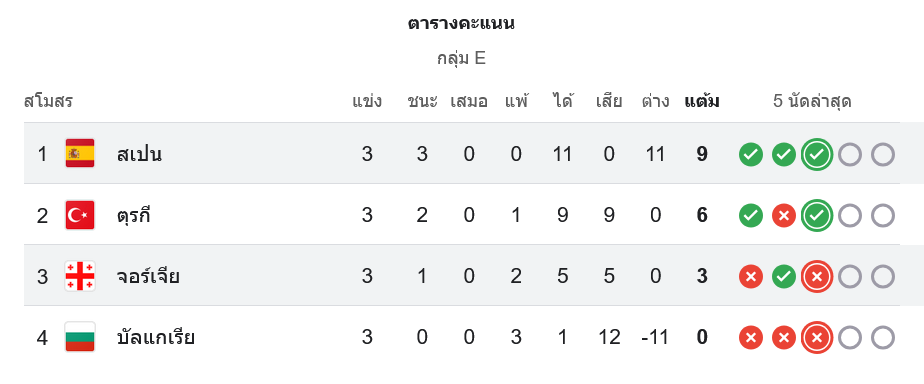 โปรแกรมใน ตารางบอล นัดต่อไป สเปนจะเปิดบ้านพบ บัลแกเรีย วันที่ 15 ตุลาคม 2568 ส่วนจอร์เจียจะออกไปเยือน ตุรกี ในวันเดียวกัน ซึ่งทั้งสองนัดมีความสำคัญต่อการลุ้นเข้ารอบโดยตรง