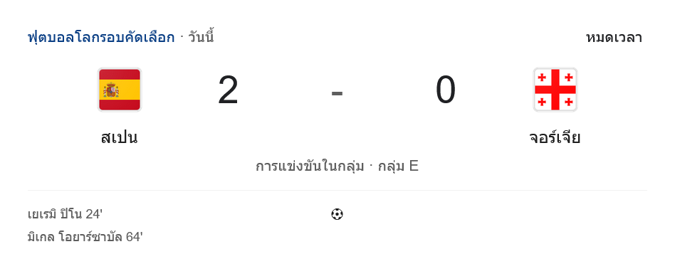 จาก : ผลบอลสด ฟุตบอลโลก รอบคัดเลือก โซนยุโรป ระหว่าง สเปน 2-0 จอร์เจีย วันนี้ 12/10/68 – บ้านกีฬา