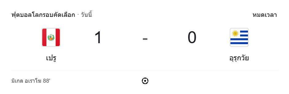 ผลบอลฟุตบอลโลก รอบคัดเลือก โซนอเมริกาใต้ 2024 ระหว่าง ทีมเปรู vs ทีมอุรุกวัย วันนี้ 12/10/67 ดูบอลย้อนหลัง คลิปไฮไลท์ ดูบอลฟุตบอลโลก รอบคัดเลือก โซนอเมริกาใต้ 2024