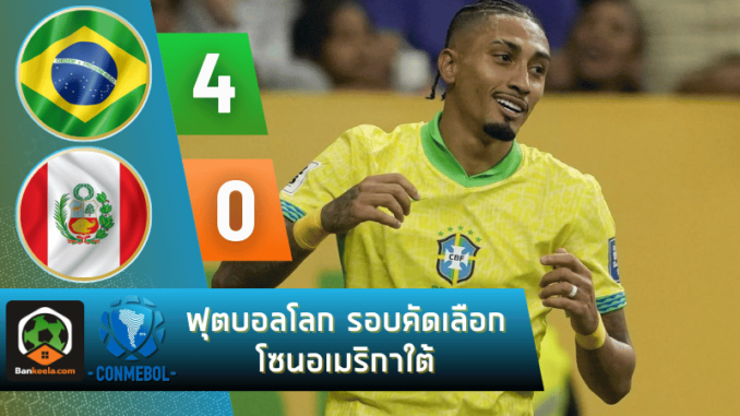 บราซิลถล่มเปรู 4-0 ในศึกฟุตบอลโลกรอบคัดเลือก 2024 ฟอร์มสุดโหด ราฟินญาสองจุดโทษนำทัพ!