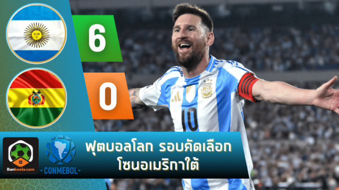 ผลบอลฟุตบอลโลก รอบคัดเลือก โซนอเมริกาใต้ 2024 ระหว่าง อาร์เจนตินา 6-0 โบลิเวีย