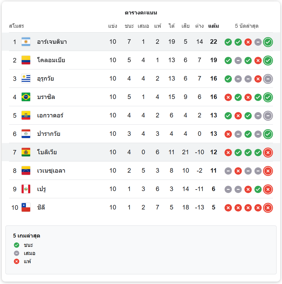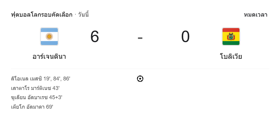 ตารางคะแนนฟุตบอลโลก รอบคัดเลือก โซนอเมริกาใต้ 2024 ระหว่าง อาร์เจนตินา 6-0 โบลิเวีย