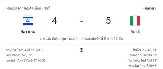 - หมดเวลา: อิสราเอล 4-5 อิตาลี เกมสุดมันส์ที่พลิกไปพลิกมา!